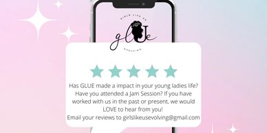 Has GLUE made a impact in your young ladies life? Have you attended a Jam Session? If you have worked with us in the past or present, we would LOVE to hear from you!